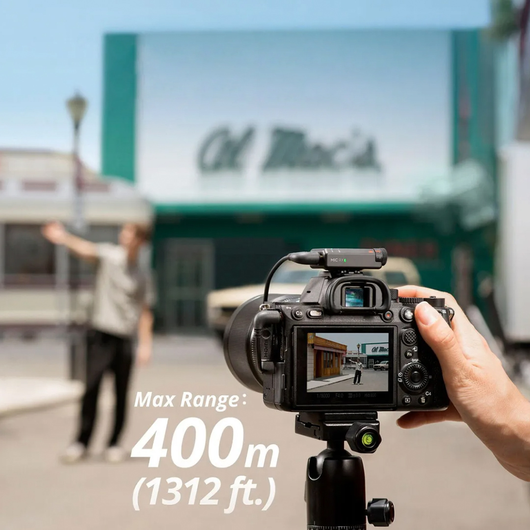 Alcance de hasta 400 m. Transmisión estable en 2.4 GHz para grabar en interiores y exteriores con confianza.